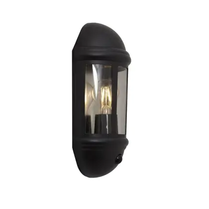 Beschrijving Ansell LED Wandlamp Latina Halve Lantaarn Zwart - Geschikt voor E27 tot 42W | IP65 - Bewegings- en lichtsensor