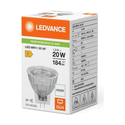 Beschrijving Ledvance LED MR11 Gu4 Reflector 1.8W 184lm 36D - 840 Koel Wit | Vervangt 20W