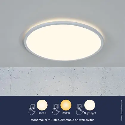 Dat je flexibel kunt zijn met licht, laat deze Oja plafondlamp van Nordlux duidelijk zien. De lamp is voorzien van een 3-staps Moodmaker functie, die je met behulp van je lichtschakelaar kunt instellen. In dit geval heb je 3 lichtstanden: