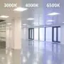 Je kunt bij dit zuinige Noxion LED paneel kiezen voor drie soorten kleurtemperatuur (Kelvin). Bij dit exemplaar betreft dat 3000 Kelvin, en dat geeft een warm wit licht. Deze lichtkleur is vooral geschikt voor ruimtes waar de sfeer als prettig en ontspannen wordt ervaren. Denk daarbij aan een wachtruimte, een aula, een kantine, of een ontvangstruimte (balie). Heb je meer baat mij een koelere kleurtemperatuur, kies dan voor 4000 Kelvin (koel wit) of eventueel voor 6500 Kelvin. Dat geeft natuurlijk daglicht af.