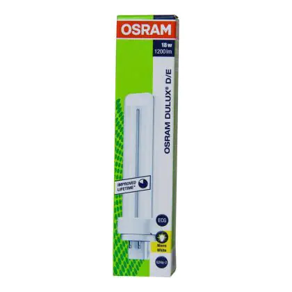 De Osram Dulux D/E is enkel te gebruiken in combinatie met een elektronisch voorschakelapparaat. De lichtbron is dimbaar. U herkent de Osram Dulux D/E 18W 830 eenvoudig aan de G24q-2 lampvoet met 4 pinnen. De lichtbron is 146 mm lang. Op het moment dat de afmeting van uw huidige lamp sterk afwijkt van 146 mm heeft u een ander wattage in gebruik.