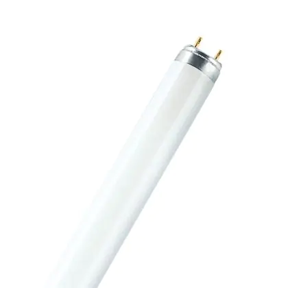 De Lumilux T8 heeft een G13 fitting waarbij de pinnetjes 13 mm uit elkaar staan. Deze buizen hebben een diameter van 26 mm. De lengte van de buis kan wisselen, er zijn vele varianten beschikbaar. Deze buis is 97cm lang en verbruikt 36W. De levensduur van deze buis is 20.000 uur. Best lang, als je bedenkt dat dit in een werkomgeving ruim 9,5 jaar is! Hier gaan we uit van een brandtijd van 7 uur per dag, 5 dagen in de week. Het eerste jaar na aanschaf van de buis profiteer je ook nog van de Lampdirect All-in garantie.