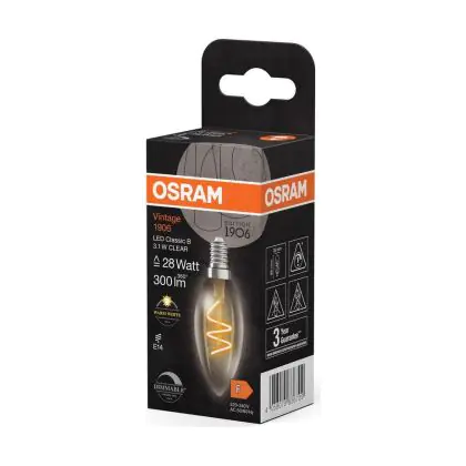 Beschrijving Osram Vintage 1906 LED Classic Slim E14 Kaars Filament Helder 3.1W 300lm - 927 Zeer Warm Wit | Beste Kleurweergave - Dimbaar - Vervangt 25W