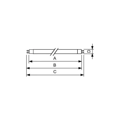 De Blacklight TL-D mini is een lagedruk fluorescentie kwiklamp. De buis heeft een G5 lampvoet en een lengte van 22,5 cm.